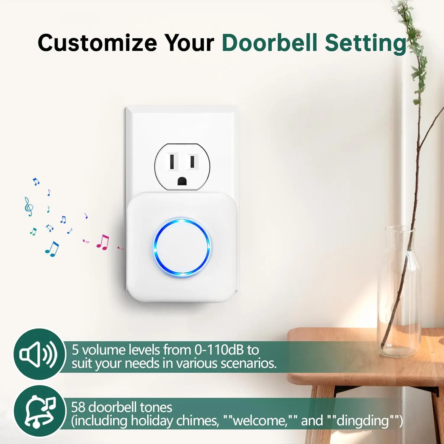Transform your doorbell system with our wireless chime extender, designed for enhanced convenience and reliability. Key features include: 1. **Never Miss a Visitor**: When someone presses your compatible doorbell, the wireless receiver rings even if your phone is not nearby, ensuring you always hear visitors. 2. **Wired to Wireless Upgrade**: Easily convert your existing wired doorbell setup to wireless using our transmitter, eliminating wiring limitations for greater flexibility and ease of use. 3. **Easy Installation**: Set up quickly without needing to distinguish between positive and negative poles; refer to the included wiring diagram for simple connection to video doorbells (note: not compatible with wired doorbells using transformers). 4. **Extended Coverage**: Enjoy a range of up to 656 feet, so whether you're in the garage or backyard, you won't miss any sounds from visitors. 5. **Customizable Alerts**: Choose from 58 different chime tones and adjust volume across five levels (0-110dB) to match your personal preferences and environment. home security and convenience.